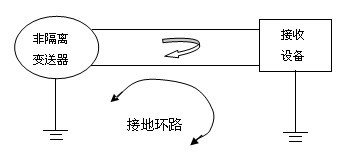 1、接地环路问题:如下图所示,当过程环路中有两处或两处以上接地电阻不相等时,就会产生接地环路,过程信号就会失真。